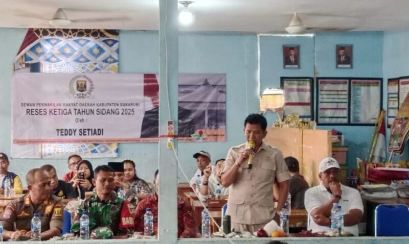 RUANG SUKABUMI – Anggota DPRD Kabupaten Sukabumi dari Komisi II Fraksi Partai Gerindra, Tedi Setiadi, melaksanakan Reses Ketiga Tahun Sidang 2025 di Gedung Madrasah Diniyah Takmiliyah Awaliyah (MDTA) Nurul Mubtadiin, Kampung Salaawi, Desa Bojongasih, Kecamatan Parakansalak, Kamis (18/9/2025).